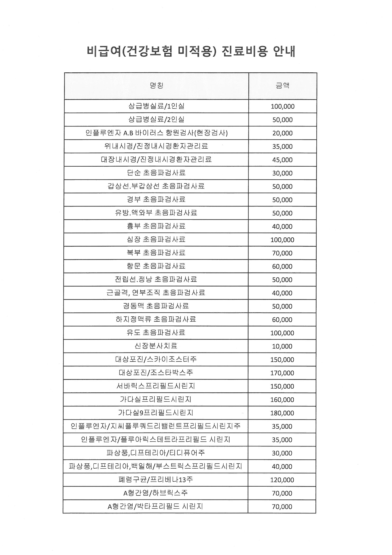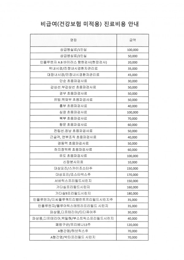 비급여 수가안내
